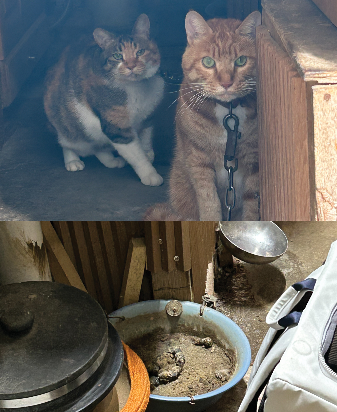 ‘화장실용’으로 보이는 작은 플라스틱 통이 있었지만, 그 안엔 고양이 모래가 아닌 흙이 담겨 있었고 이미 배설물로 가득 차 있었습니다. 밥그릇으로 보이는 그릇에는 물도, 사료도 전혀 없었습니다. 사람과 차량이 끊임없이 오가는 시끄러운 골목에서 아이들은 무분별한 소음에 노출되어 있었고, 한 아이는 놀라 몸부림치다 목줄이 엉켜 울부짖고 있었습니다.