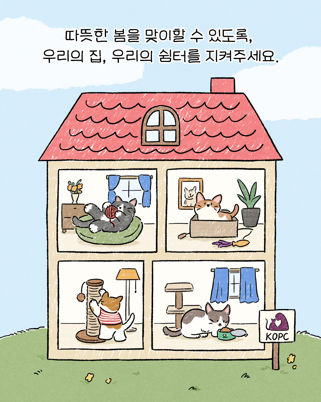 겨울집에는 규칙적인 청결·위생 관리와 겨울이 끝나면 회수하겠다는 약속이 담긴 안내문을 함께 부착해 주세요. 이는 이웃의 이해를 돕고 갈등을 예방하며, 길고양이와 사람 모두에게 안전하고 편안한 환경을 만들어 줍니다.