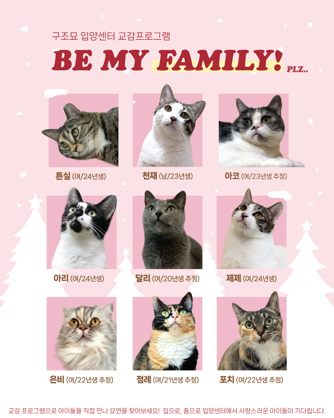 *입양을 신청하지 않아도 교감 프로그램을 우선으로 진행할 수 있습니다. 입양이 고민된다면 아이들을 직접 만나 묘연을 찾아보세요!
